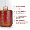 Công thức đặc biệt mang lại sự khác biệt của sản phẩm với màu đỏ đặc trưng từ sự kết hợp giữa 1% Vitamin B12, 15% Vitamin C, 1% Ferulic Acid, 1% Niacinamide, 1% Panthenol, 1% Alpha-Arbutin, 1% Nonapeptide-1, 0.5% Vitamin E, 0.5% Hyaluronic Acid, chiết xuất rễ cam thảo và tế bào gốc nho tím. Các hoạt chất này không chỉ giúp làm sáng, nâng cơ và cấp ẩm mà còn hỗ trợ cải thiện sắc tố, tái cấu trúc da và giảm thiểu các dấu hiệu lão hóa.