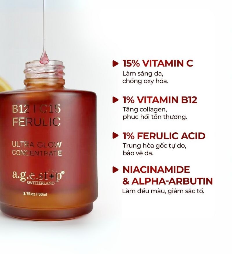 Tinh chất B12/C15 Ferulic – Tinh chất trắng sáng, mờ nám & chống lão hóa Agestop B12|C15 + Ferulic Concentrate lọ 50ml - MS AT26