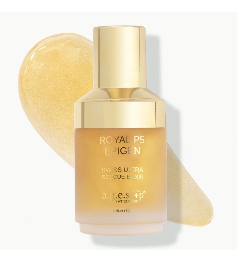 Tinh chất P5 siêu mịn & căng mọng làn da Agestop Swiss P5 Royal Epigen Rescue Elixir khoá ẩm 24h cho da, kết cấu dạng serum mỏng nhẹ, mượt mà giúp khắc phục nhanh tình trạng da khô, da mất độ đàn hồi tự nhiên. Tăng cường hiệu quả tái tạo, dưỡng da căng mọng, giảm đáng kể nếp nhăn và cải thiện kết cấu da hiệu quả.
