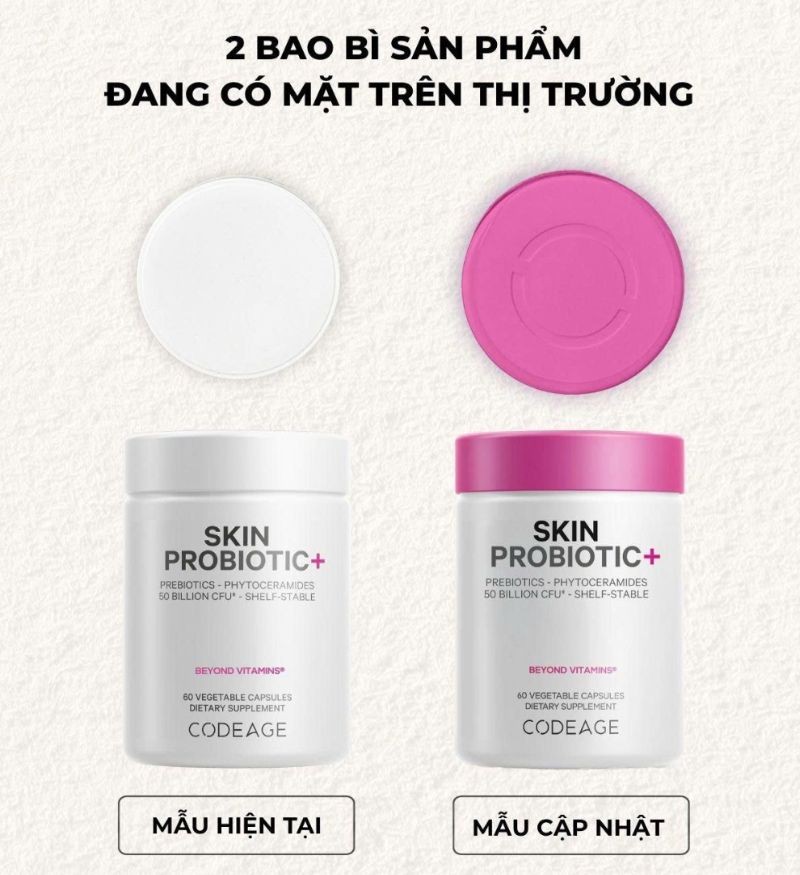 Viên uống lợi khuẩn Codeage Skin Probiotic được thương hiệu Codeage nghiên cứu và phát triển. Sản phẩm chứa tới 50 tỷ CFU lợi khuẩn trong mỗi khẩu phần, cộng với vitamin C, thực vật lên men và phytoceramides lành tính.