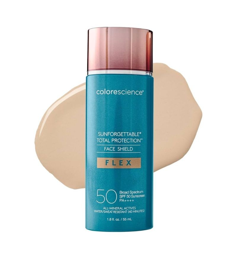 Colorescience Sunforgettable Total Protection Face Shield Flex SPF 50 (Fair) là dòng kem chống nắng khoáng chất cao cấp đến từ Mỹ, nổi bật với khả năng bảo vệ đa tầng và làm đẹp da chỉ trong một bước. Sản phẩm ứng dụng công nghệ Flex độc quyền, chứa các hạt sắc tố được bọc kín, giúp tự động điều chỉnh màu sắc để tiệp vào tông da, tạo hiệu ứng nâng tông nhẹ nhàng, che phủ các khuyết điểm nhỏ và làm đều màu da tự nhiên.