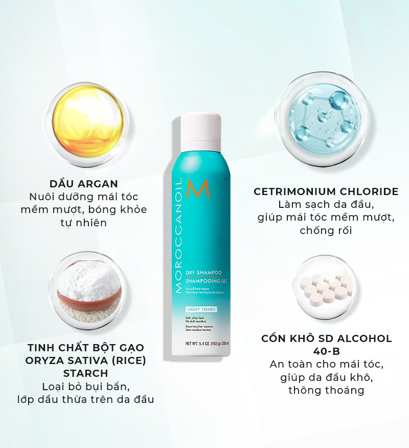 Dầu gội khô cho tóc sáng màu Moroccanoil Dry Shampoo Light Tones chai 217 ml