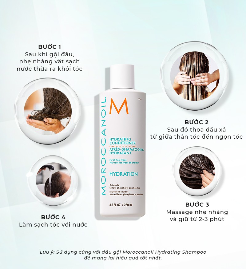 Khuyến khích sử dụng cùng với dầu gội Moroccanoil Hydrating Shampoo để mang lại hiệu quả tốt nhất.