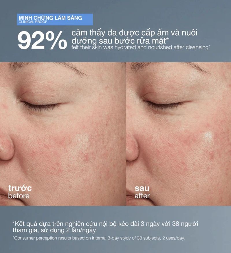 Làm sạch dịu nhẹ bụi bẩn, bã nhờn và tạp chất.