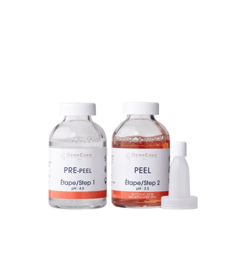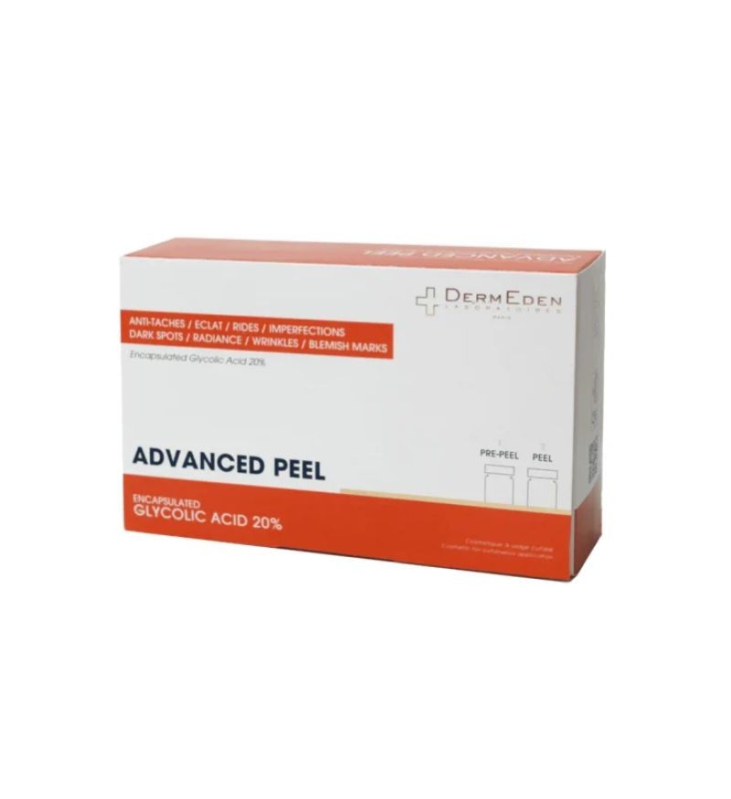 DermEden Advanced Peel là bộ sản phẩm peel da chuyên nghiệp gồm 2 bước: PRE-PEEL (30ml) và PEEL (30ml), được bào chế từ thương hiệu DermEden Laboratoires (Pháp).
