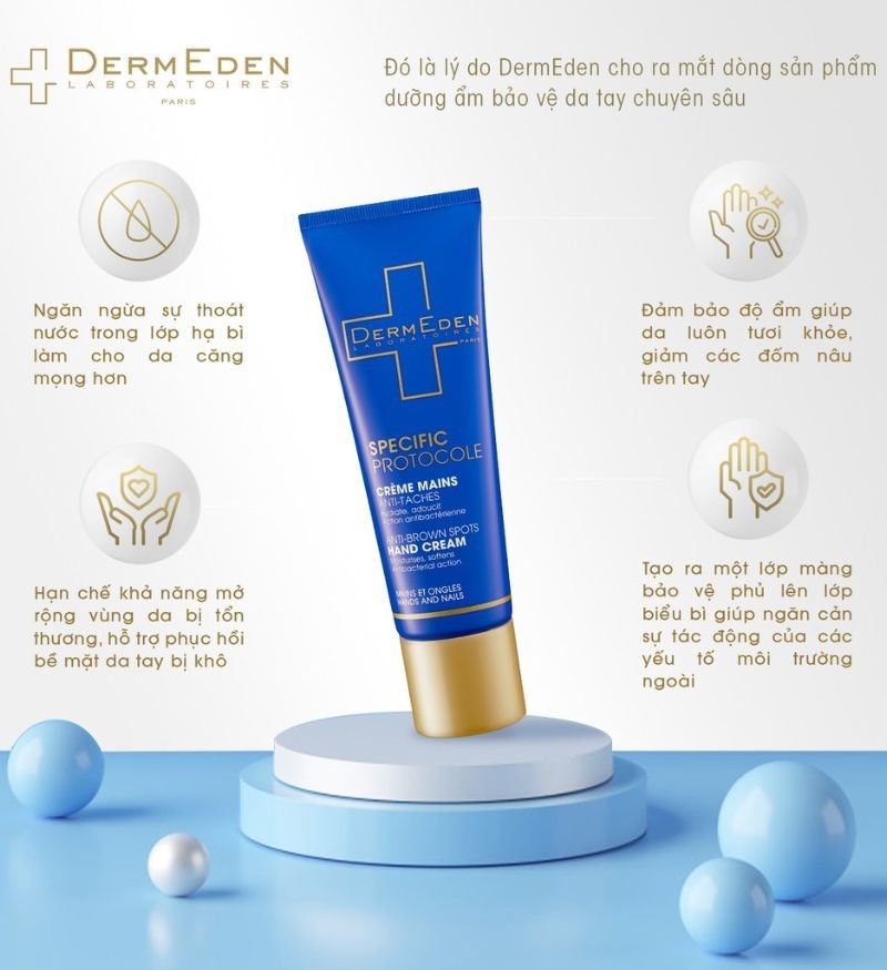 Đôi tay là một trong những bộ phận chịu nhiều tác động từ môi trường và dễ dàng tố cáo dấu hiệu lão hóa sớm. Hiểu được điều đó, DermEden Anti-Brown Spots Hand Cream ra đời như một giải pháp toàn diện, được thiết kế đặc biệt để chăm sóc và bảo vệ đôi tay khỏi các vấn đề về lão hóa, khô ráp và đốm nâu. Sản phẩm này là kết quả của nghiên cứu chuyên sâu từ DermEden Laboratoires, thương hiệu dược mỹ phẩm uy tín của Pháp.
