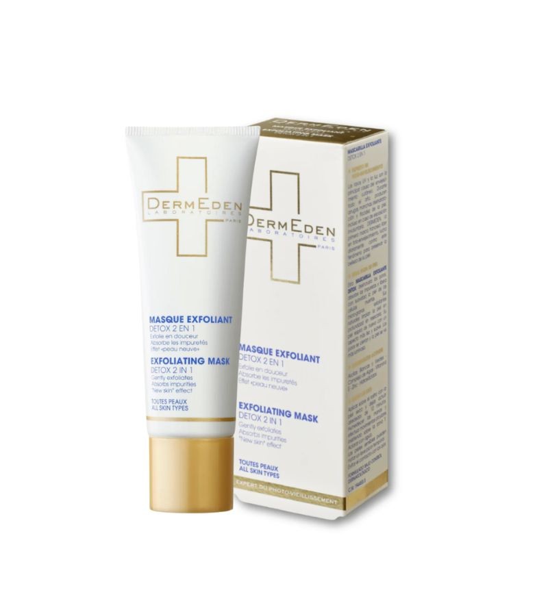 DermEden Exfoliating Mask Detox 2in1 được nghiên cứu và phát triển bởi DermEden Laboratoires, mặt nạ này mang đến quy trình chăm sóc da chuyên sâu tại nhà, giúp da lấy lại vẻ tinh khiết và rạng rỡ.