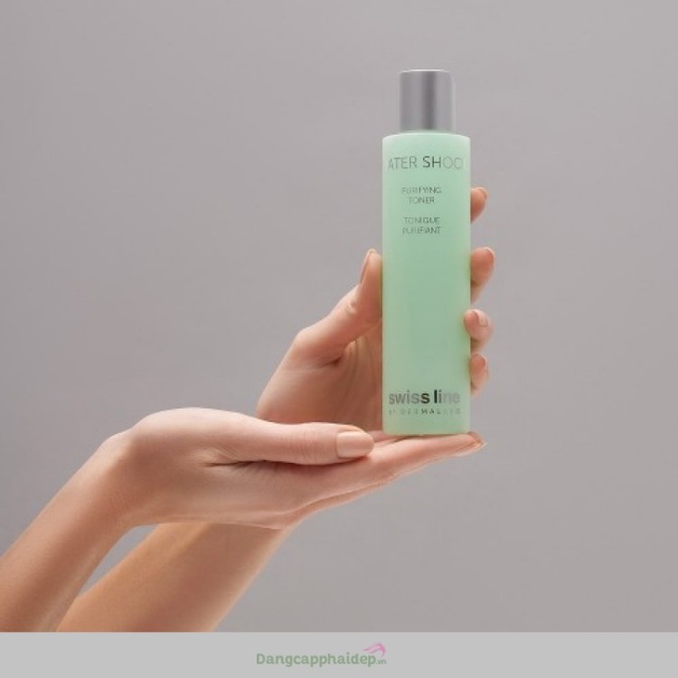 Swissline Purifying Toner thuộc dòng Water Shock. Bộ sưu tập bao gồm những loại sữa rửa mặt và nước hoa hồng tôn trọng chức năng sinh học tự nhiên của làn da, được pha chế với nước giàu khoáng chất từ một địa điểm của Unesco ở Thụy Sĩ.
