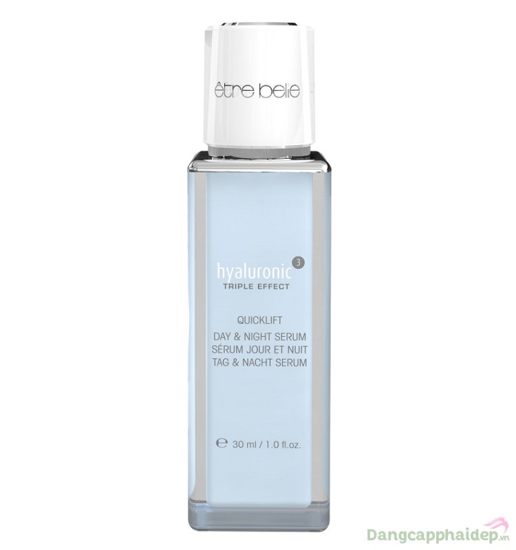 Etre Belle Hyaluronic Day Night Serum mang đến hiệu quả dưỡng ẩm sâu nhờ sự kết hợp giữa Acid Hyaluronic chuỗi dài, ngắn và QuickLift™. Ngoài ra sản phẩm còn giúp nâng cơ, chống oxy hóa, dưỡng ẩm, làm mờ nếp nhăn và làm săn chắc da hiệu quả.