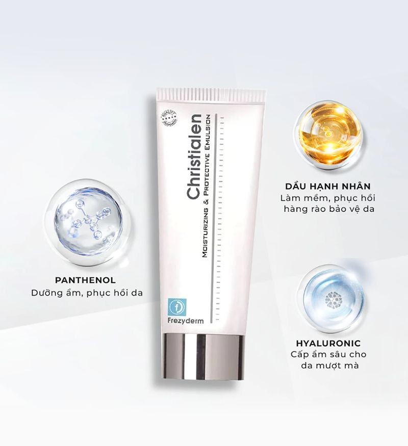 Frezyderm Christialen là nhũ tương dưỡng thể chuyên biệt dành cho làn da khô, mang đến giải pháp cấp ẩm sâu và làm mềm mịn da vượt trội. Với công thức chứa các thành phần dưỡng ẩm cao cấp như Sodium Hyaluronate, Filagrin Activator và Panthenol, sản phẩm không chỉ giúp cải thiện độ ẩm da lên tới 28% chỉ sau 30 ngày sử dụng mà còn hỗ trợ phục hồi, bảo vệ làn da trước các tác động từ môi trường.