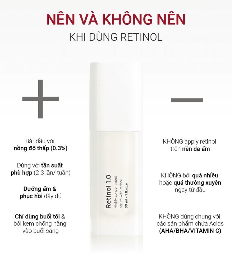 Khi da đã quen và dung nạp Retinol, thì có thể tăng tần suất sử dụng và sử dụng kết hợp với các hoạt chất điều trị khác để tăng cường hiệu quả.