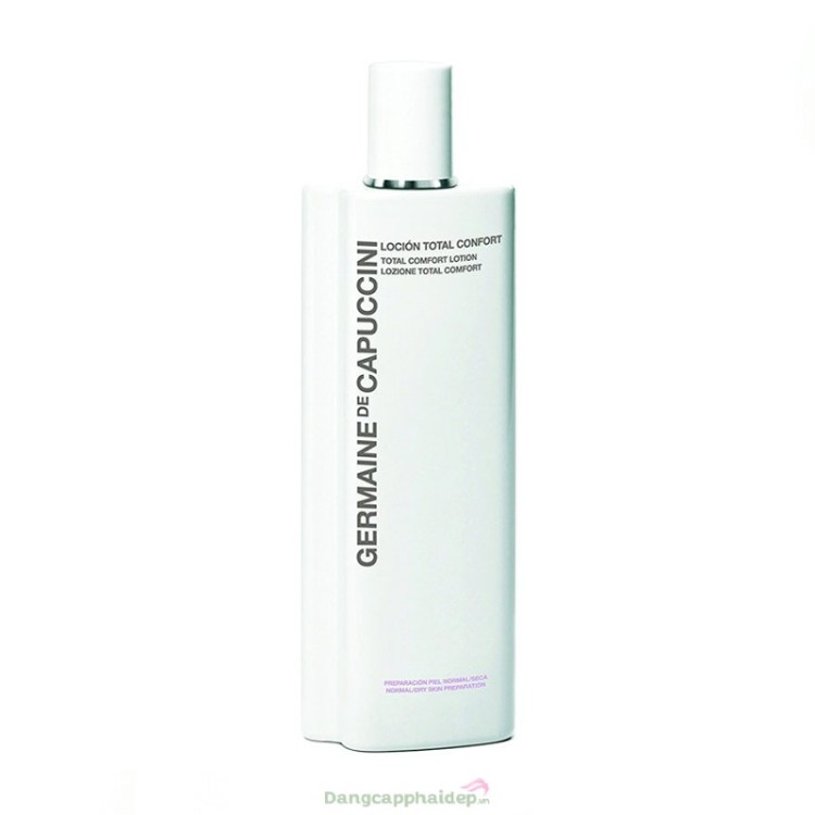 Nước cân bằng Germaine De Capuccini Total Comfort Lotion là giải pháp dưỡng ẩm, tái tạo da dành cho mọi loại da, đặc biệt là da khô, đến từ thương hiệu dược mỹ phẩm Germaine De Capuccini - Tây Ban Nha. Sản phẩm chứa chiết xuất dầu oliu, tơ tằm thủy phân và Sodium Hyaluronate, giúp làm sạch, dưỡng ẩm, cân bằng độ pH, tẩy tế bào chết, làm dịu da, tăng cường sức đề kháng, tái tạo da, mang đến làn da sáng mịn, căng mượt.
