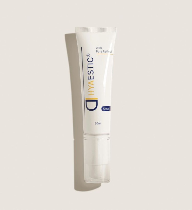 Tinh chất chống lão hóa Hyaestic 0.5% Pure Retinol chứa 0.5% Retinol (một trong các dẫn xuất của vitamin A) có khả năng thúc đẩy quá trình bong da, tăng tốc độ tái tạo tế bào, kích thích tăng sinh collagen để cải thiện độ đàn hồi, săn chắc cho da. Đồng thời ngăn ngừa quá trình da lão hóa, giúp giảm xuất hiện các nếp nhăn, giảm tình trạng da xỉn màu, giúp làn da sáng đều màu hơn.