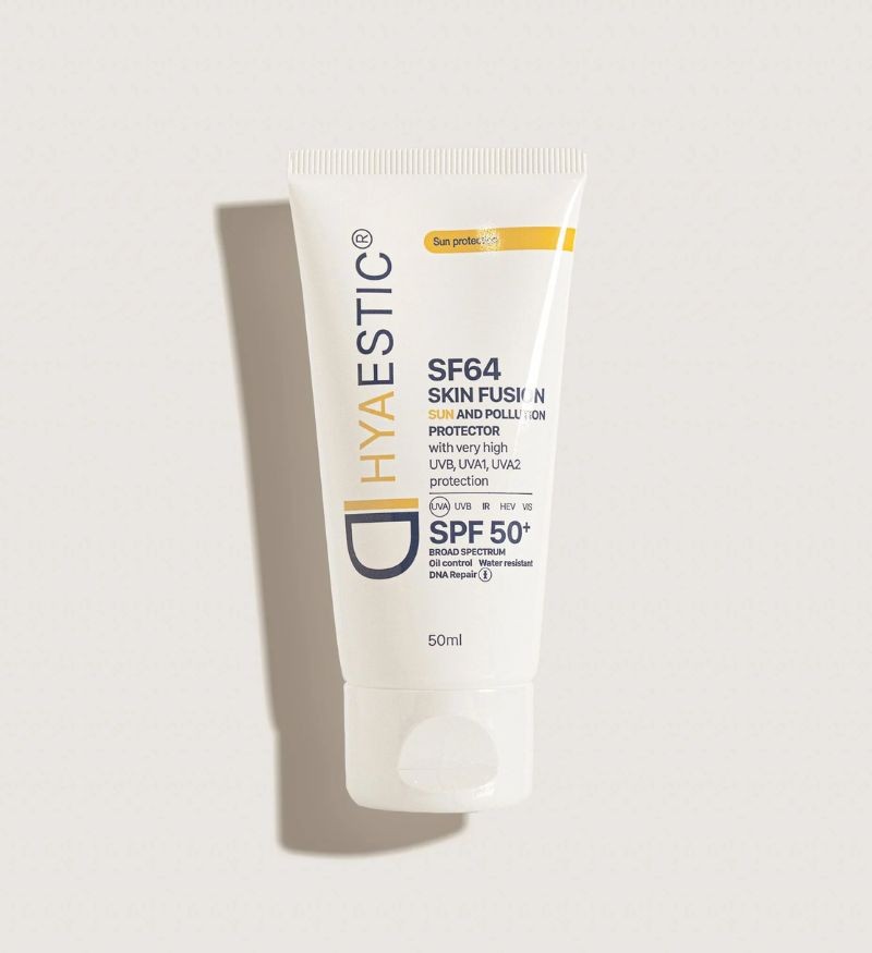 Hyaestic Skin Fusion SF64 SPF50+ là kem chống nắng phổ rộng cao cấp đến từ thương hiệu Hyaestic, được phát triển dành riêng cho làn da đô thị hiện đại. Với tỷ lệ màng lọc chống nắng lên tới 25%, kết hợp chỉ số SPF50+ và PPD 24, sản phẩm bảo vệ da tối ưu khỏi tác hại của tia UVA/UVB, ánh sáng xanh (HEV), tia hồng ngoại (IR) và ô nhiễm môi trường – những tác nhân hàng đầu gây lão hóa và tổn thương da.