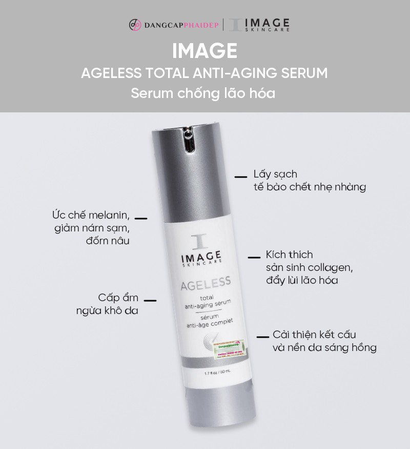 Image Ageless Total Anti-Aging Serum thuộc Image Ageless - Dòng sản phẩm chống lão hóa da nổi tiếng do thương hiệu Image Skincare sản xuất. Bộ sản phẩm này được nghiên cứu bởi các chuyên gia, đội ngũ bác sĩ da liễu và dược sĩ hàng đầu Châu Âu. Ngay từ khi ra mắt đã trở thành “hiện tượng” gây được tiếng vang lớn. Đến nay, nó đã có mặt tại hơn 60 quốc gia và nhận được phản hồi rất tích cực.