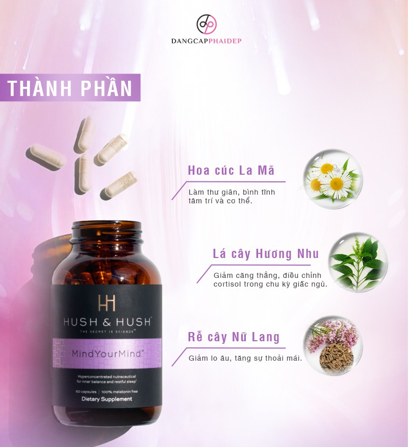 Viên uống cải thiện giấc ngủ Hush and Hush Mind Your Mind 60 viên