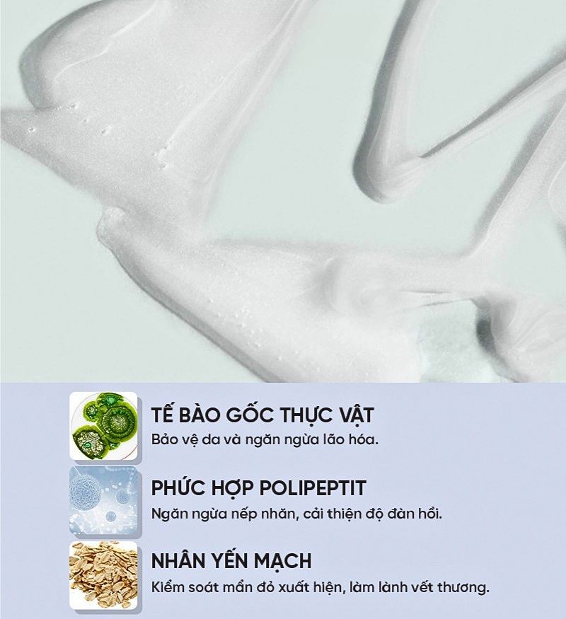 Sữa rửa mặt này được bào chế từ các peptide tiên tiến và chiết xuất thực vật, nhẹ nhàng cuốn trôi lớp trang điểm và tạp chất giúp phục hồi và đẩy nhanh quá trình lành thương cho da. Đồng thời, làm mát, dịu tức thì vùng da kích ứng, bóng đỏ. Đặc biệt, sản phẩm còn có khả năng phục hồi các sợi DNA. Góp phần tái tạo cấu trúc da, để làn da khỏe khoắn từ bên trong.
