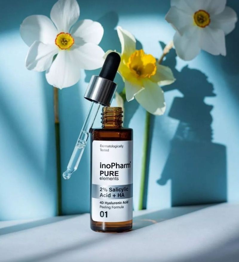 Tinh chất peel da InoPharm 2% Salicylic Acid + Hyaluronic Acid Peeling Formula đến từ thương hiệu InoPharm (Bulgaria), được thiết kế để giải quyết các vấn đề về da dầu, mụn, lỗ chân lông to mà vẫn đảm bảo độ ẩm cần thiết cho da, làm sạch da, từ đó kháng viêm, giảm mụn, mang lại làn da mịn màng, thông thoáng.