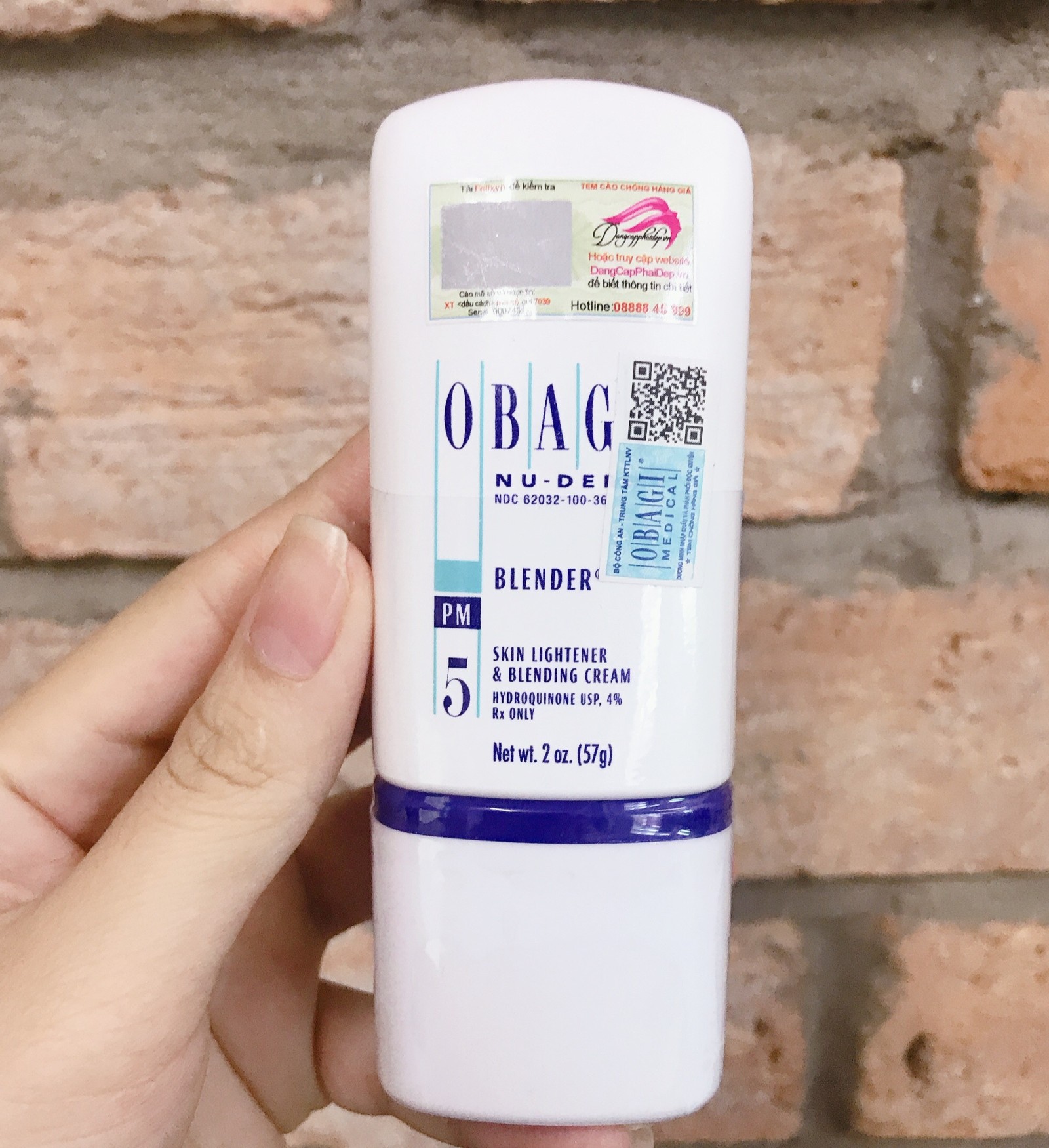 Nu-Derm Blender (Obagi số 5) là dòng kem dưỡng phục hồi tái tạo da cao cấp của thương hiệu dược mỹ phẩm Obagi Medical – Mỹ (thành lập năm 1988 bởi bác sĩ Zein E. Obagi) nằm trong hệ thống điều trị nám Nuderm System. Sản phẩm chứa thành phần Hydroquinone đảm nhận vai trò ức chế tận gốc tế bào sắc tố, làm mờ sạm nám, làm cho màu sắc làn da tươi sáng hơn.