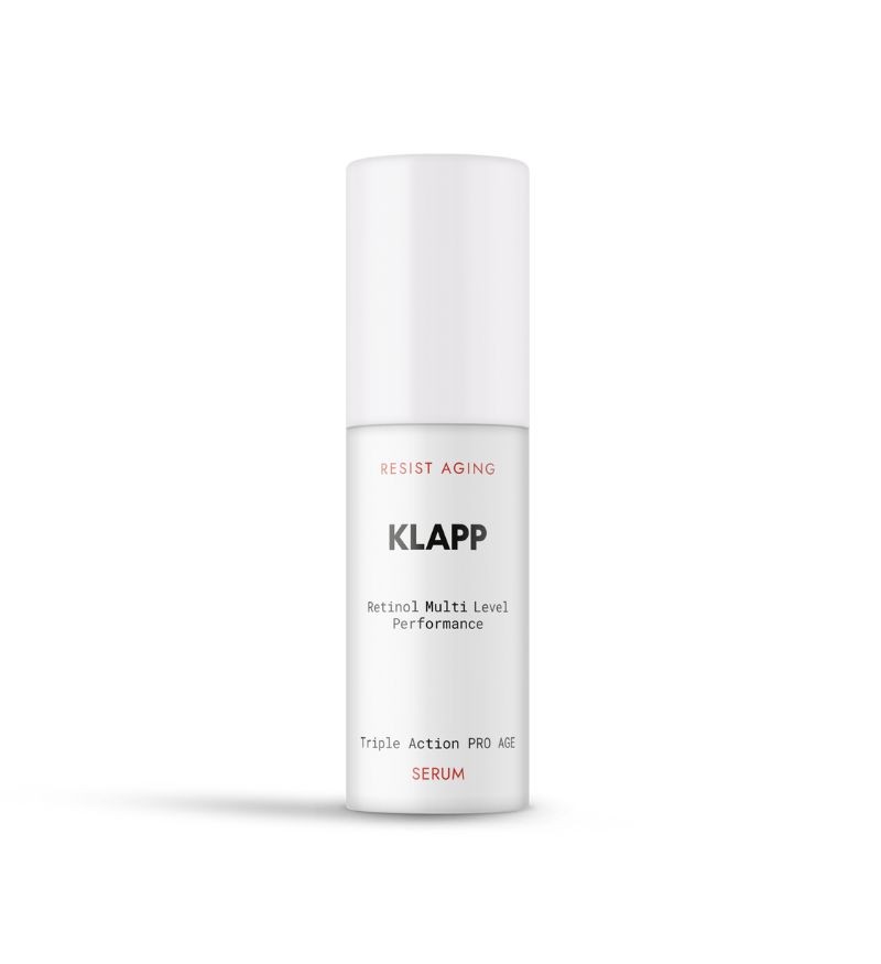 Đến từ thương hiệu Klapp (Đức), Retinol Triple Action Pro Age Serum là tinh chất dưỡng da cao cấp, nổi bật với cơ chế tái kích hoạt làn da mạnh mẽ thông qua công nghệ Retinol tác động gấp ba lần. Sản phẩm kết hợp sức mạnh của thế hệ retinoid mới Hydroxypinacolone Retinoate (HPR) cùng Plant-based Retinol Booster và Vitamin A Palmitate hoạt động nhịp nhàng để tối ưu hóa tốc độ thay mới tế bào đồng thời giảm thiểu kích ứng cho da. Từ đó làm đầy các nếp nhăn sâu và định hình lại đường nét khuôn mặt mà vẫn đảm bảo độ dung nạp lý tưởng ngay cả với làn da nhạy cảm.