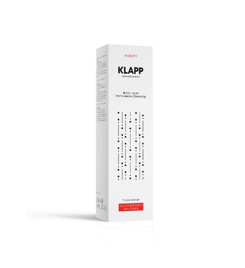 Klapp Triple Action Skin Perfection PHA Toner thuộc dòng Multi Level Performance Cleansing của Klapp Skin Care Science (Đức), được phát triển để hỗ trợ làm sạch sâu, cấp ẩm và thúc đẩy quá trình tái tạo da theo cách dịu nhẹ hơn. Sản phẩm đặc biệt phù hợp với làn da cần một bước toner vừa làm sạch hiệu quả, vừa không gây khô căng hay khó chịu sau khi sử dụng.
