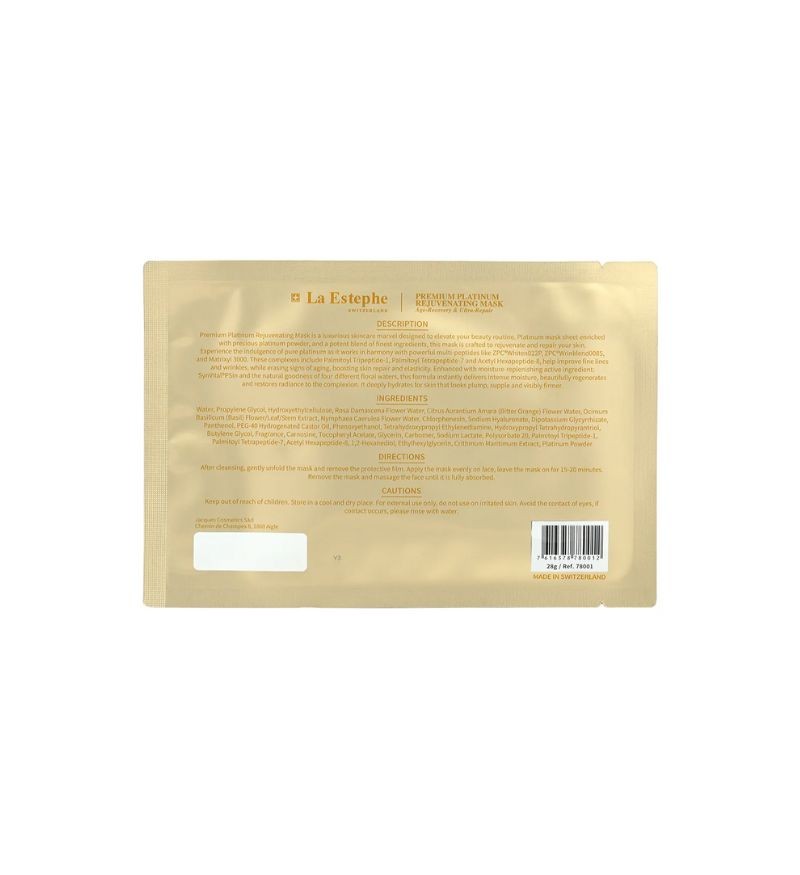 La Estephe Premium Platinum Rejuvenating Mask là mặt nạ cao cấp chống lão hóa đến từ thương hiệu La Estephe của Thụy Sĩ, nổi bật với các sản phẩm chăm sóc da kết hợp công nghệ tiên tiến và thành phần tự nhiên. Mặt nạ được thiết kế để cải thiện kết cấu da, làm săn chắc và cung cấp độ ẩm sâu, giúp da trở nên mịn màng, săn chắc và tươi mới.