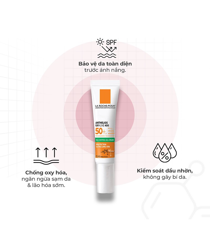 Kem chống nắng La Roche-Posay Anthelios XL chính là "cứu tinh" giúp bạn "xua tan" nỗi lo vì làn da dầu mụn, bóng nhờn và dễ nổi mụn khi dùng kem chống nắng. Với công thức đặc biệt dành riêng cho da dầu mụn, nhạy cảm, sản phẩm giúp bảo vệ da tối ưu khỏi tia UVA/UVB, đồng thời kiểm soát dầu và mang lại làn da mịn màng, khô thoáng suốt cả ngày dài.