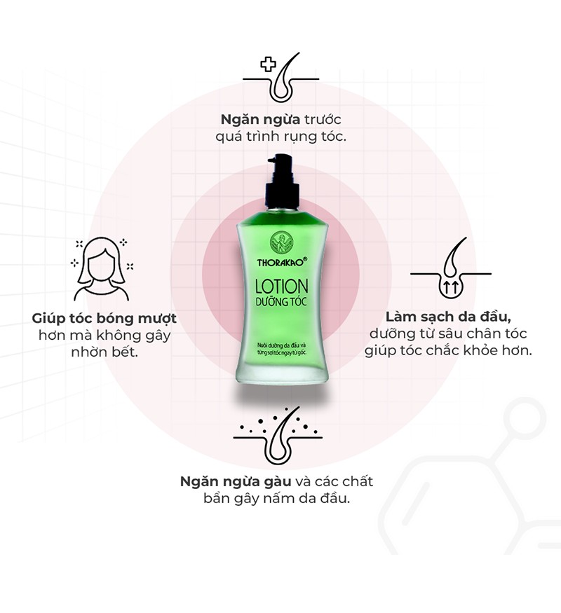 Lotion dưỡng tóc Thorakao tinh chất bưởi là sản phẩm giúp ngăn ngừa rụng tóc, nuôi dưỡng da đầu, kích thích mọc tóc, đồng thời bảo vệ da đầu khỏi vi khuẩn, nấm và gàu. Với chiết xuất hoa và vỏ bưởi thiên nhiên, sản phẩm mang đến sự dịu nhẹ, không gây kích ứng, giúp mái tóc chắc khỏe và mềm mượt hơn từng ngày.