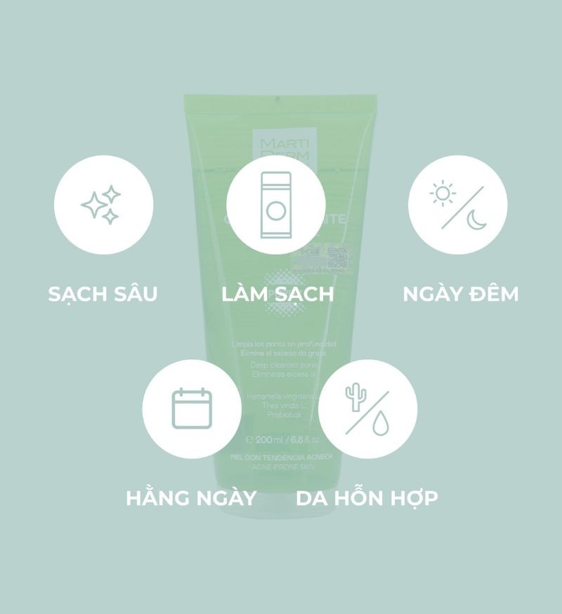 Gel rửa mặt cho da dầu mụn MartiDerm Acniover Purifying Gel 200ml