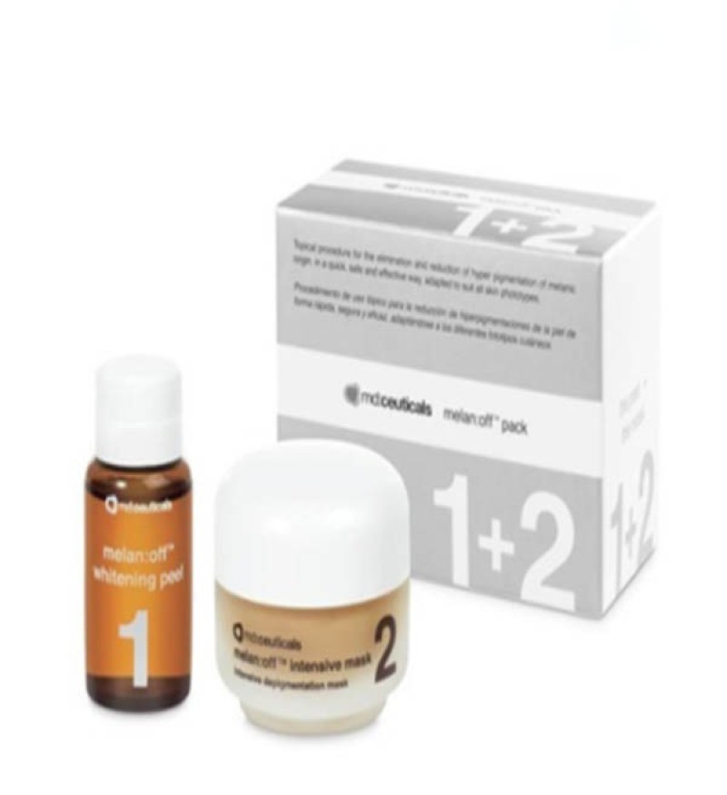 Md:Ceuticals Melan Off Professional Pack của thương hiệu mỹ phẩm Md:Ceuticals là bộ trị nám hoàn hảo gồm 2 sản phẩm chuyên biệt, thích hợp cho mọi loại nám da. Bao gồm việc điều trị tại phòng khám của bác sĩ và tuân thủ điều trị tại nhà.