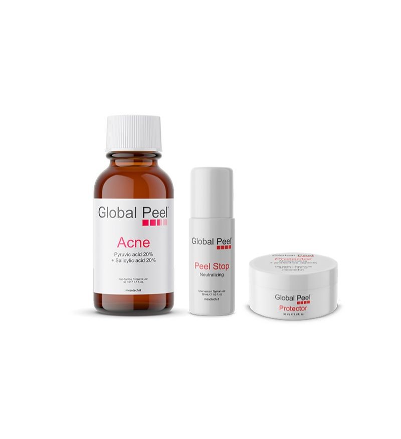 Global Peel Acne từ Mesotech, sản xuất tại Ý, là một sản phẩm peel da chuyên sâu giúp cải thiện mụn trứng cá, mụn viêm và các vấn đề về sắc tố da. Sản phẩm kết hợp hai thành phần chính là Pyruvic Acid 20% và Salicylic Acid 20%, mang lại hiệu quả vượt trội trong việc làm sạch sâu da, giảm mụn và giúp da khỏe mạnh hơn. Global Peel Acne không chỉ làm giảm mụn và sưng tấy mà còn giúp làm sáng da, giảm thâm nám, đem lại làn da sạch sẽ và đều màu hơn.