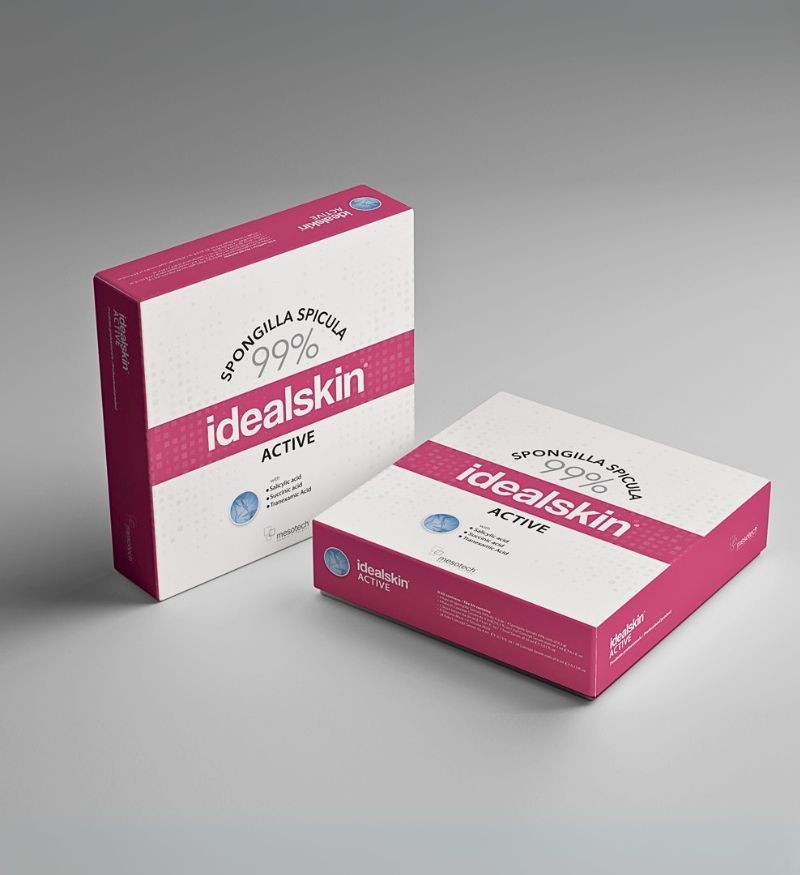 Cốt lõi của Idealskin Active là Spongilla Spicula 99% tinh khiết – vi cấu trúc silica siêu nhỏ từ bọt biển nước ngọt, giúp loại bỏ tế bào sừng, kích thích tái tạo và tăng hấp thụ dưỡng chất. Hiệu quả được tăng cường nhờ bộ hoạt chất chuyên biệt: Salicylic Acid làm sạch và kiểm soát dầu, Succinic Acid hỗ trợ loại bỏ tế bào chết, Niacinamide cân bằng bã nhờn và cải thiện sắc tố, cùng Tranexamic Acid làm mờ thâm và hạn chế tăng sắc tố sau mụn.