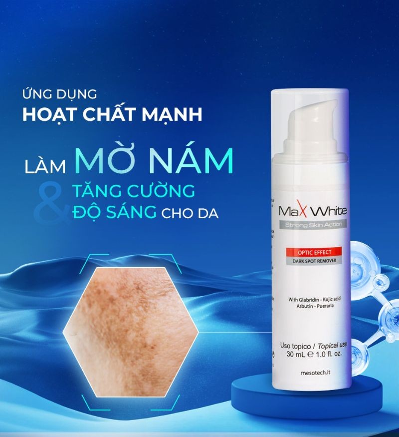 Kem dưỡng trắng da Max White là giải pháp cho làn da tăng sắc tố, giúp làm mờ thâm nám, tàn nhang, đốm nâu của thương hiệu dược mỹ phẩm Mesotech cao cấp tại Ý.