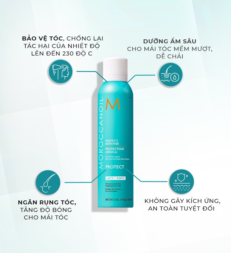 Moroccanoil Perfect Defense là dòng sản phẩm xịt chống nhiệt siêu nhẹ đến từ tập đoàn Moroccanoil – Israel. Thương hiệu này xuất hiện trên thị trường chưa đến 10 năm nhưng đã chiếm được tình cảm, sự tin dùng của hàng triệu khách hàng tại nhiều nước trên thế giới. Xịt bảo vệ tóc toàn diện Moroccanoil Perfect Defense chính là “kết tinh hoàn hảo” của công nghệ sản xuất hiện đại; với kết quả nghiên cứu thành công của đội ngũ các nhà khoa học, trong việc tạo ra một sản phẩm bảo vệ tóc khỏi nhiệt tốt nhất, toàn diện nhất.