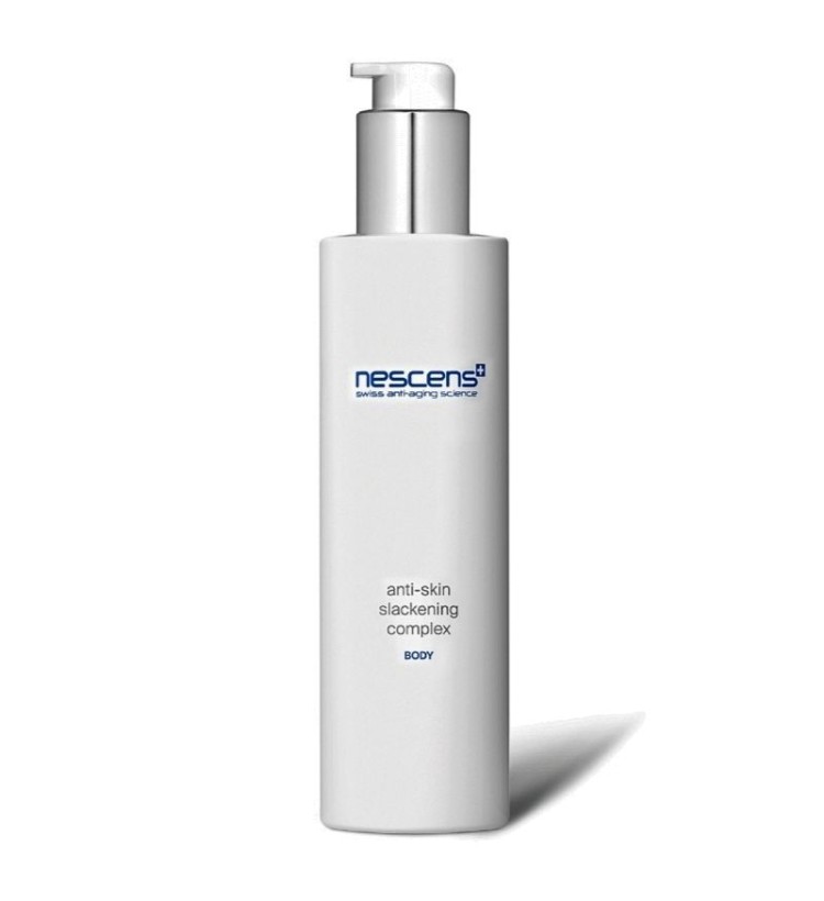 Nescens đã phát triển một loại dưỡng chất phức hợp giúp trẻ hoá tổng thể cấu trúc da, ngăn ngừa và cân bằng sự chùng nhão, cải thiện sự đàn hồi của các mô mang tên Nescens Anti-Skin Slackening Complex - Body. Nescens Anti-Skin Slackening Complex kết hợp tính hiệu dụng của dược mỹ phẩm dưới dạng công thức galenic được bào chế ở thể lỏng với khả năng hấp thụ và thẩm thấu tối ưu. Giúp nhanh chóng cung cấp dưỡng chất cho các lớp tế bào da. Kết cấu kem mịn nhẹ, thẩm thấu nhanh không gây bết dính, bít tắc. Từ đó, phục hồi hiệu quả khả năng tái cấu trúc những dấu hiệu tuổi tác đặc trưng của mô da: sự đàn hồi, màu da, độ mềm mại, thư thái và rạng rỡ. Nuôi dưỡng làn da mềm mịn, chắc khỏe từ sâu bên trong.