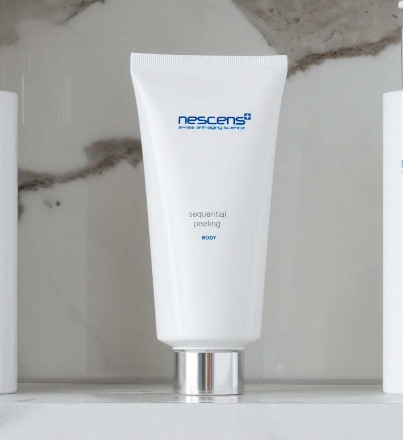 Nghiên cứu của Nescens đã phát triển một quy trình tẩy da chết độc đáo Nescens Sequential Peeling - Body. Sản phẩm dựa trên chuỗi lần lượt ba tác động để mang lại hiệu ứng làm mới mạnh mẽ cho lớp biểu bì: mô phỏng sinh học, xúc tác sinh học (enzyme) và cơ học.