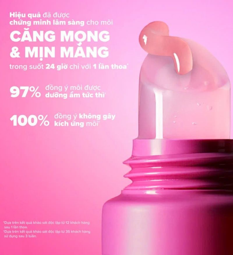 Kích thích sản sinh Collagen tự nhiên, giúp đôi môi căng mọng và đầy đặn rõ rệt.
