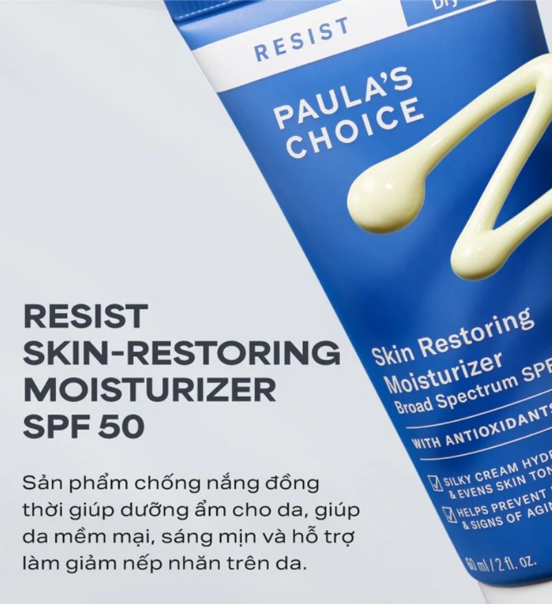Kem chống nắng và dưỡng ẩm giúp da sáng mịn Paula's Choice Resist Skin-Restoring Moisturizer SPF 50 60ml