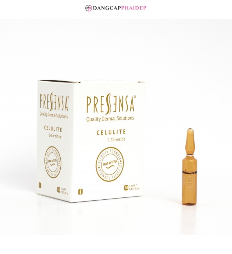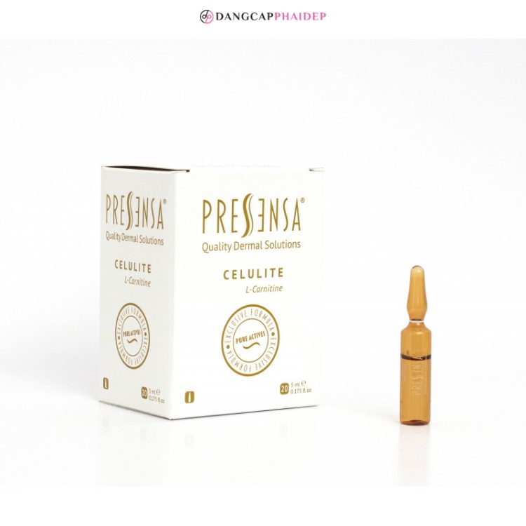 Pressensa Celulite được bào chế dưới dạng dung dịch tiêm, thuộc dòng Mesotherapy, cần được thực hiện bởi bác sĩ chuyên khoa có kinh nghiệm. Điểm nổi bật của sản phẩm là khả năng giảm mỡ, điều trị sần vỏ cam nhanh chóng, an toàn, hiệu quả, giúp cải thiện vóc dáng, mang đến làn da mịn màng, săn chắc.