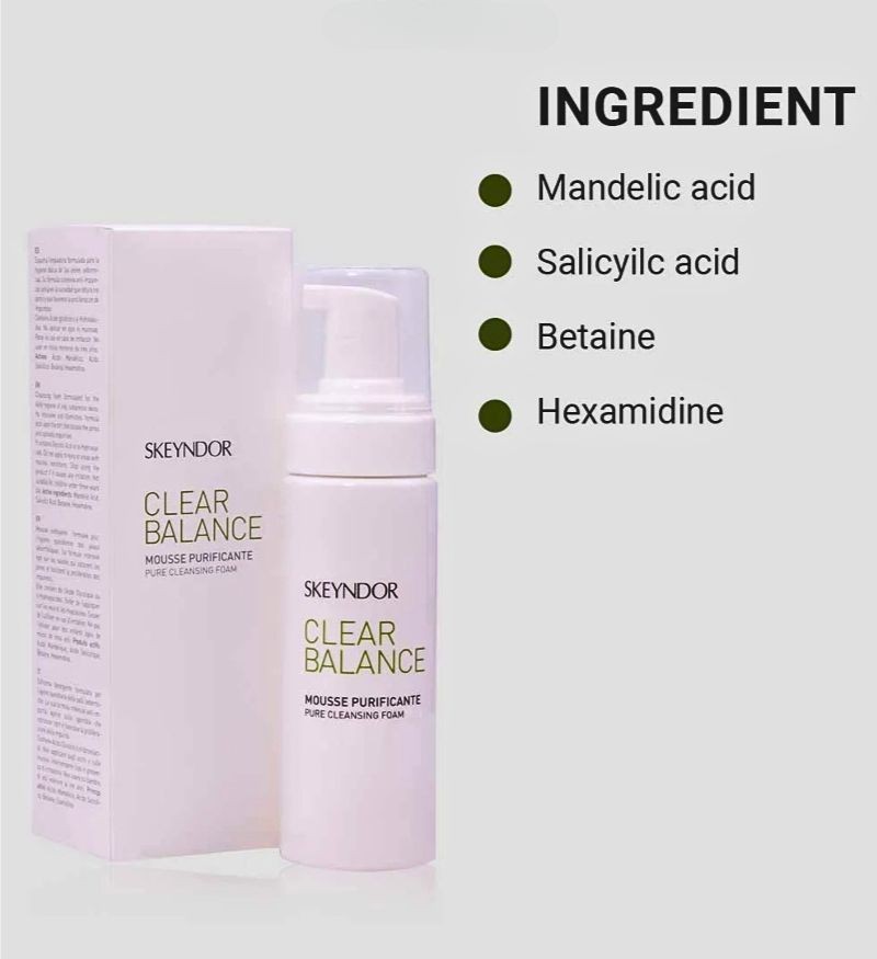 Công thức Skeyndor Pure Cleansing Foam tạo bọt nhẹ nhàng, làm sạch sâu lỗ chân lông và ngăn ngừa hình thành chất bẩn chuyên sâu. Đồng thời, giúp kiểm soát dầu cho da thông thoáng tinh khiết hoàn toàn. Nằm trong dòng chăm sóc da thiên dầu và bị mụn trứng cá chuyên nghiệp - Clear Balance đến từ Skeyndor. Thương hiệu đã có mặt tại hơn 50 quốc gia và được tin dùng tại hàng trăm nghìn cơ sở spa, thẩm mỹ viện cao cấp trên toàn cầu.
