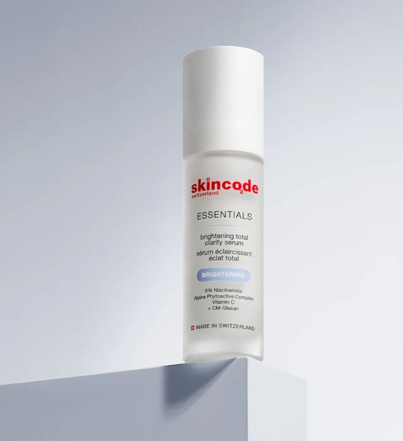 Skincode Alpine White Brightening Total Clarity Serum thuộc bộ sưu tập Skincode Essentials Alpine White. Đây là dòng sản phẩm dạng serum lỏng nhẹ, thẩm thấu nhanh vào da nổi tiếng với khả năng cải thiện sự đổi màu và sắc tố da vượt trội, được nhiều chuyên gia và người dùng đánh giá cao. Sản phẩm này được điều chế với các đặc tính chữa lành, làm dịu và tái tạo của công nghệ độc quyền CM-Glucan, cùng với Niacinamide và phức hợp chiết xuất từ thực vật Alpine. Mang đến công dụng ức chế melanin, xóa mờ dấu hiệu của sắc tố và các khuyết điểm khác. Tích cực dưỡng da sáng mịn, đều màu trong thời gian nhanh nhất.
