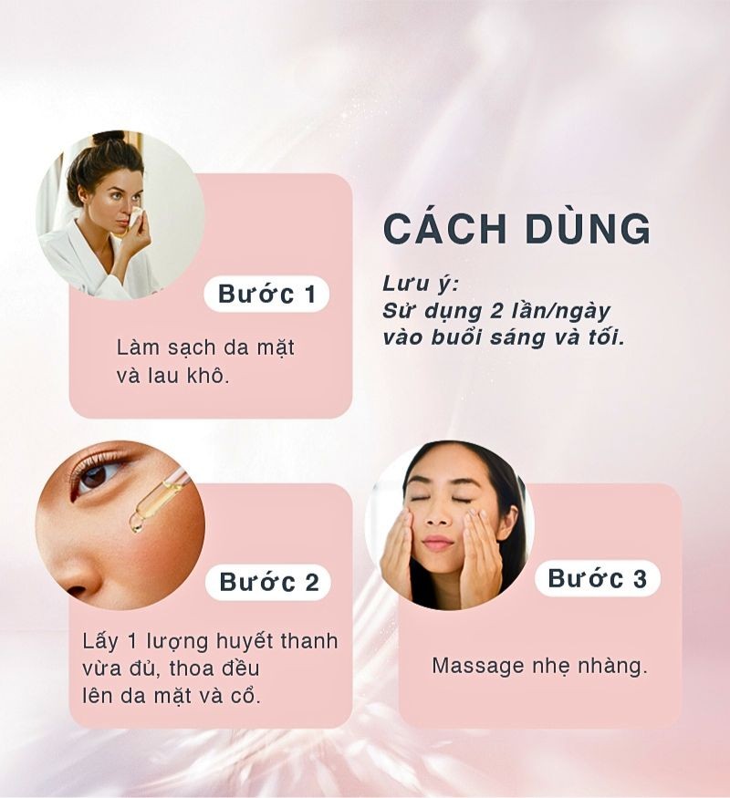 2 lần/ngày vào sáng và tối. Sử dụng sản phẩm liên tiếp 6-8 tuần để có kết quả tốt nhất.