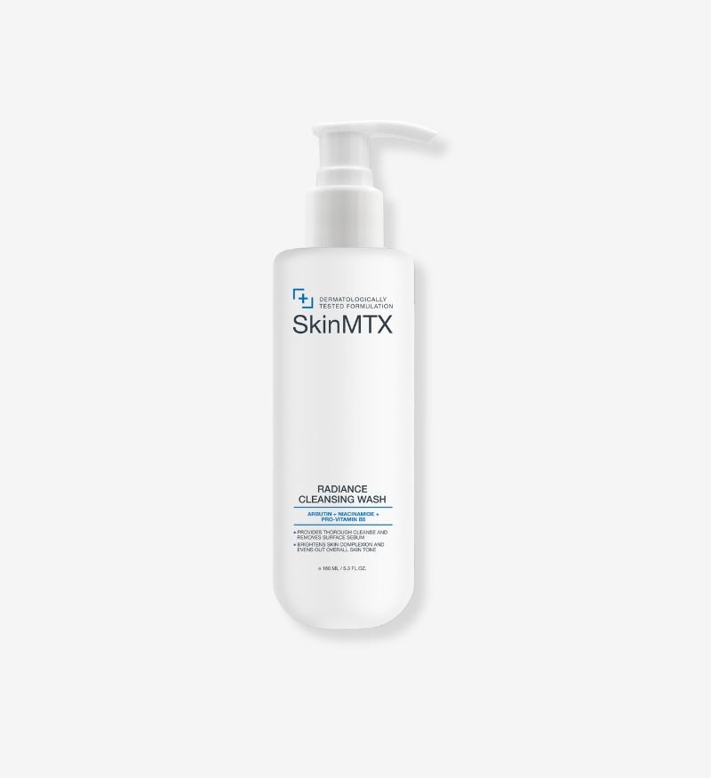 Với Niacinamide và Arbutin, sản phẩm giúp làm sáng da, giảm thâm nám và các vết thâm do mụn hoặc tổn thương, đồng thời mang lại làn da đều màu và rạng rỡ. Công thức của Radiance Cleansing Wash còn bổ sung Panthenol và các chiết xuất thiên nhiên giúp dưỡng ẩm, làm dịu và cân bằng độ ẩm cho da mà không gây khô. SkinMTX Radiance Cleansing Wash phù hợp với mọi loại da, đặc biệt là da xỉn màu, cần làm sáng và dưỡng ẩm.