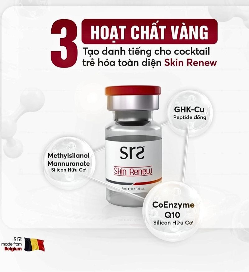 Tiêm trẻ hóa SRS Skin Renew đến từ SRS Mesotherapy, Bỉ - Thương hiệu đáng tin cậy trong ngành thẩm mỹ nội khoa tại Châu Âu. Được phát triển với đầy đủ các dòng sản phẩm chuyên nghiệp sử dụng tại các phòng khám chuyên khoa và các sản phẩm chăm sóc da tại nhà.