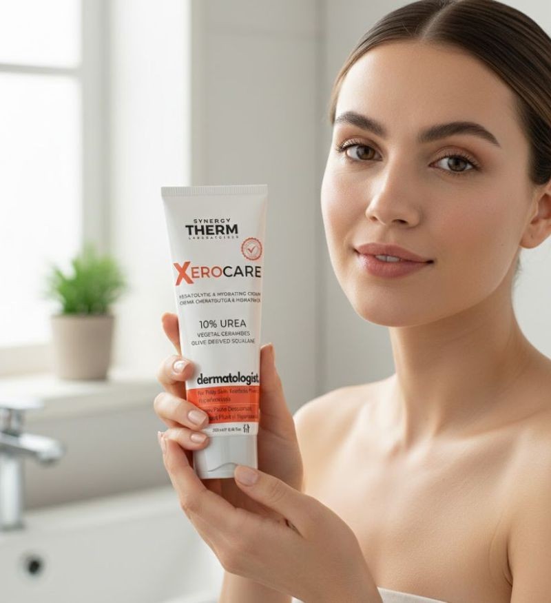 Được phát triển từ thương hiệu Synergy Therm, kem dưỡng Xerocare Keratolytic & Hydrating Cream 10% Urea ứng dụng cơ chế kép với 10% Urea, vừa đóng vai trò tiêu sừng để hòa tan liên kết tế bào chết, vừa là nhân tố giữ ẩm tự nhiên hút nước sâu vào biểu bì. Sự kết hợp này giải quyết hiệu quả tình trạng dày sừng nang lông, lông mọc ngược và làm mềm hiệu quả các vùng da chai sần ở khuỷu tay, gót chân mà không gây nhờn dính.
