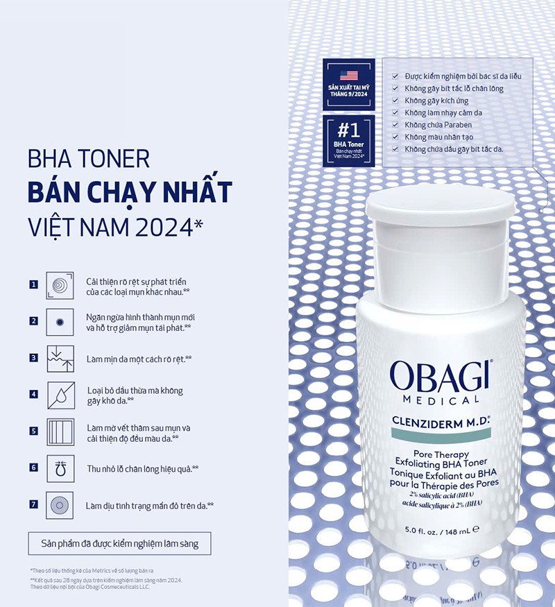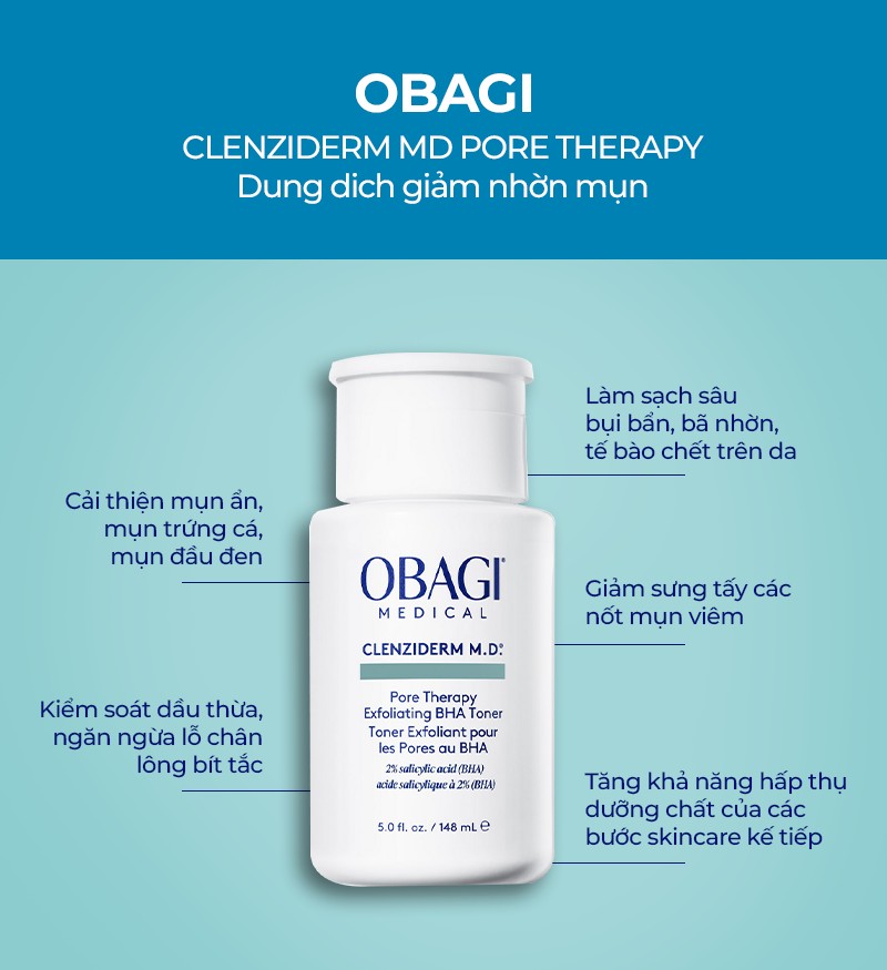 Đến từ một thương hiệu danh tiếng bậc nhất tại Mỹ – Obagi Medical, dòng nước hoa hồng cho da dầu mụn Toner Obagi Clenziderm MD Pore Therapy nhanh chóng trở thành một “giải pháp” chăm sóc da toàn diện dành cho mọi người, giúp thanh tẩy nhẹ nhàng tế bào chết, làm sạch sâu lỗ chân lông, đồng thời giảm bài tiết dầu nhờn, giúp kháng khuẩn, chống viêm mụn và ngăn ngừa mụn hình thành.