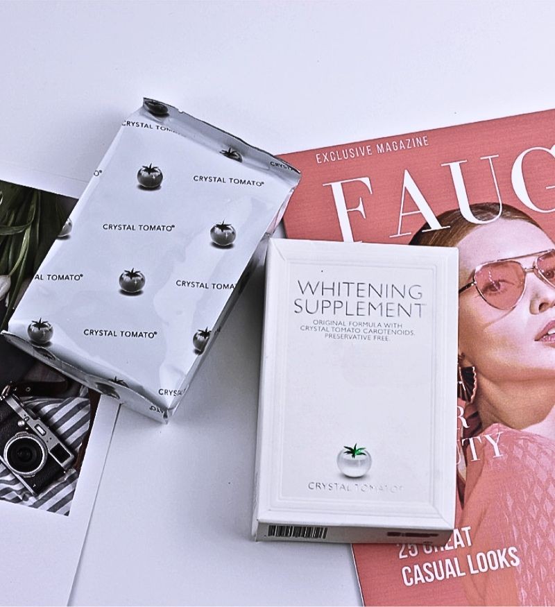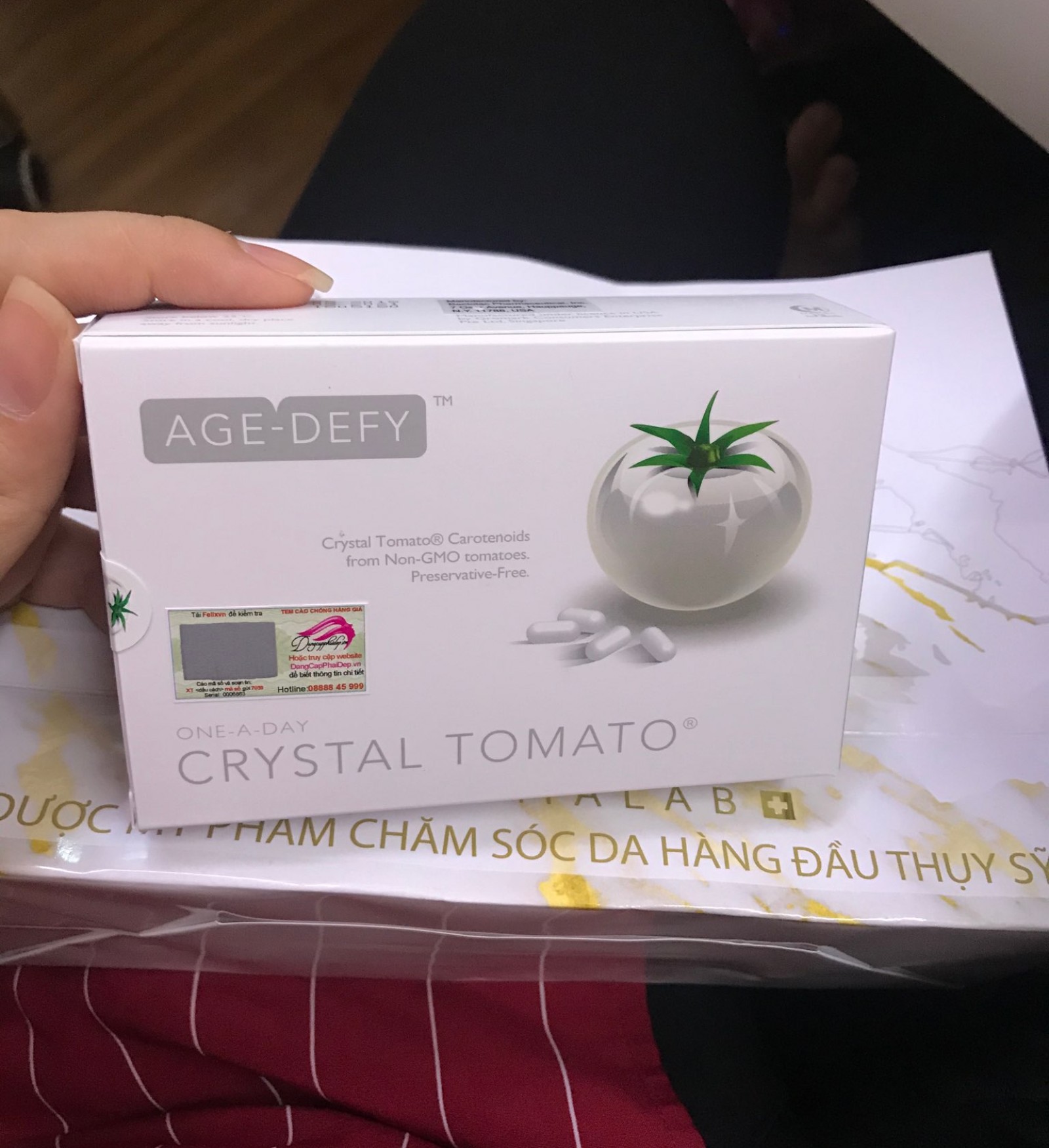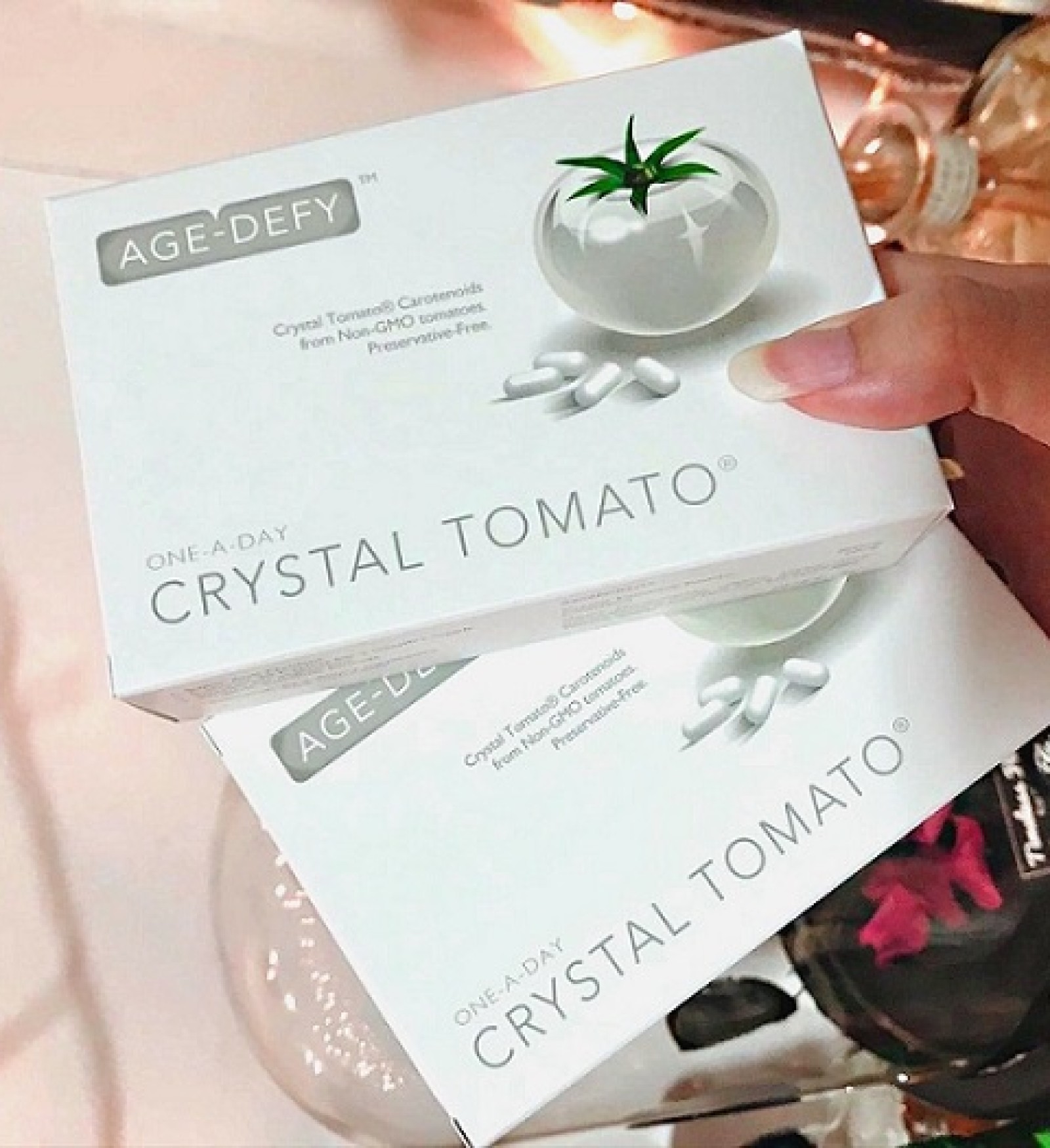 Viên uống trắng da Crystal Tomato được chiết xuất từ một giống cà chua trắng có khả năng độc đáo giúp làm giảm quá trình trình hình thành sắc tố melanin ở da. Đặc biệt, những thành phần này còn giúp trẻ hóa da vì chứa hoạt tính làm chậm oxy hóa.