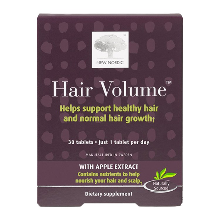 Viên uống Hair Volume New Nordic là giải pháp chăm sóc tóc đến từ Thụy Điển, giúp hạn chế tình trạng rụng tóc, thúc đẩy quá trình mọc tóc mới và phục hồi các sợi tóc yếu, hư tổn. Với công thức chứa Biotin, Vitamin B5, Kẽm, Đồng cùng các chiết xuất thảo dược, sản phẩm không chỉ tác động bên ngoài mà còn bổ sung dưỡng chất cần thiết cho tóc từ bên trong. Hair Volume New Nordic mang lại mái tóc khỏe mạnh, suôn mượt và giảm gãy rụng, chẻ ngọn.