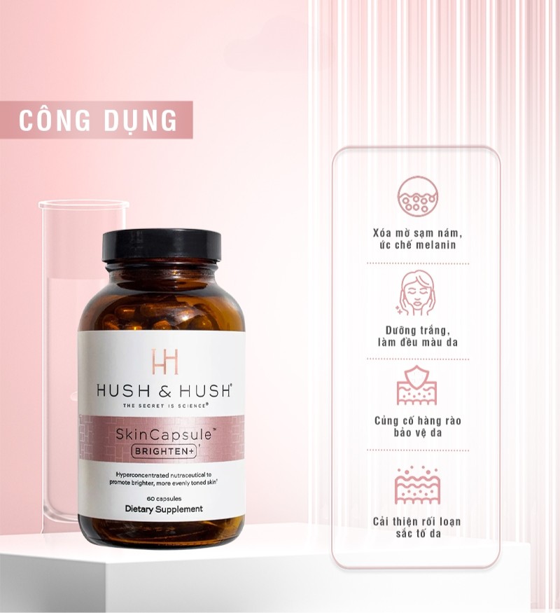 Viên uống trắng da giảm nám Hush and Hush Skin capsule Brighten+ 60 viên