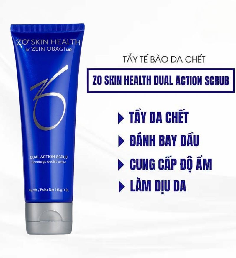 Zo Skin Health Dual Action Scrub là “đứa con cưng” của nhà Zo Skin Health – Thương hiệu dược mỹ phẩm đình đám tại Mỹ và đã có mặt trên 100 quốc gia. Sản phẩm là kem tẩy tế bào chết cho mọi loại da với tác động kép được làm giàu bởi các hoạt chất như Acid Salicylic, chiết xuất dầu lá tràm… Giúp loại bỏ mọi tế bào chết, tế bào sừng già cỗi.